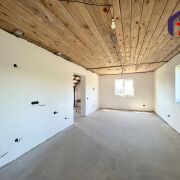 -На первом этаже - просторная кухня-гостиная 29,9 м2, котельная, коридор 17,5 м2 и совмещённый санузел. Полы по всему этажу с водяным тёплым полом для максимального комфорта.