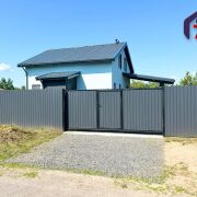 -Участок ровный, площадью 10,03 сотки, угловой, что дарит максимальную приватность. Участок огорожен забором из металлопрофиля с откатными воротами для удобного заезда вашего авто.