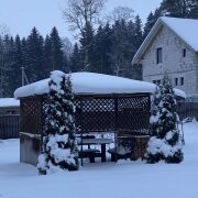В окружении лесов, живописном месте продается уютная экодача из высококачественного цельного бруса в одном из лучших направлений от МКАД (Молодечненское), расположена в 23 км от Минска в жилом СТ «Надежда Щербины». Участок боковой, ровный, чистый, прямоугольной формы, засажен газонной травой, молодыми туями и пионами. Совсем рядом в пешей доступности грибной лес, а в полутора километрах по лесной дороге очень классное озеро. Недалеко от дома в пожарном водоёме водятся амур, карп, линь.