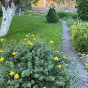 Участок облагорожен живой изгородью, на территории около 10-ти видов ягод, туи, декоративные кусты.