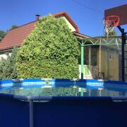 Участок ухоженный, аккуратный. Огорожен со всех сторон забором. Высажены садовые деревья: яблони, голубика, пихты, сосны, голыбые ели. Деревья ухоженные, взрослые (около 15-ти лет им). Установлены 2 больших парника.