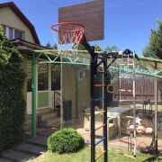 На вьезде оборудованы 2 парковочных места для автомобилей. Есть 2 заезда: распашные ворота и откатные(открывается вручную), укомлектована детская площадка, место для установки бассейна, баня из бруса, жилой дом, установлен навес, приятная терраса для отдыха.