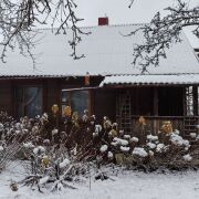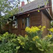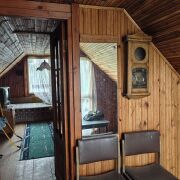 Дом - экологически чистый, полностью выстроен из дерева - деревянный сруб, снаружи и внутри обшит  деревянной доской. Оригинальный авторский проект и дизайн. В доме дышится легко, зимой - тепло, а жарким летом - прохладно. Отопление - печное, есть камин. Вода центральная сезонная, санузел на улице. Дом уютный, с неповторимой атмосферой, располагающей к отдыху и комфортному проживанию.
