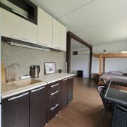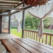 Дом 36м : из СИП-панели с декор отделкой, крыша – ондулин, окна – двойные стеклопакеты, на окнах установлены роллеты. В доме также есть кондиционер.