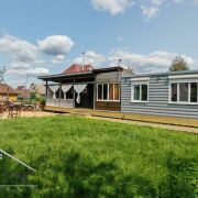 Терасса 23м: оцилиндрованный брус, палубная доска.