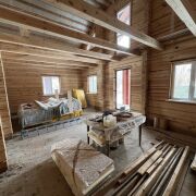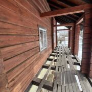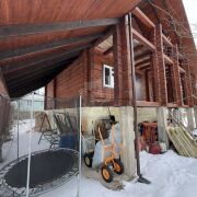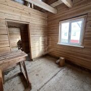 Дом из сруба 180мм, нижние венцы сруба – Дуб, лаги на терассе – Дуб. По всему дому установлены двухкамерные стеклопакеты, крыша – керамопласт, в дом подведена канализация, скважина, электричество. Сделан навес для авто.