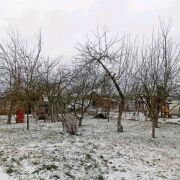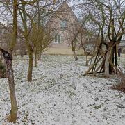 Участок ровный, правильной формы. На участке зеленые насаждения, садовые деревья. Хороший, крепкий забор.
