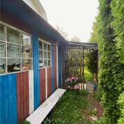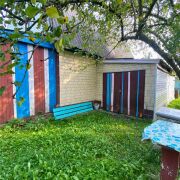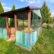 На участке расположен гараж для автомобиля и инвентаря, также есть веранда и теневой навес. Плодовые деревья и туи создают уют, тень в жаркую погоду и ощущение уединения на участке.