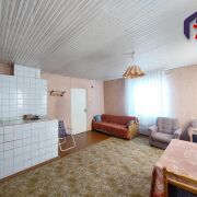 -Внутри дом аккуратный и жилой: стены и потолки оклеены обоями, на полу - натуральное дерево, которое создаёт тёплую, дачную атмосферу. Кухня оборудована кухонным гарнитуром - всё необходимое для сезонного или постоянного проживания уже есть.