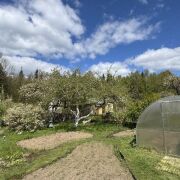 -Участок 5,91 сотки огорожен, на нём высажены плодовые деревья, организованы грядки и возведена теплица, что создаёт все условия для выращивания овощей и фруктов.