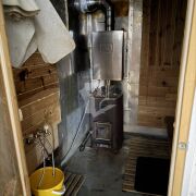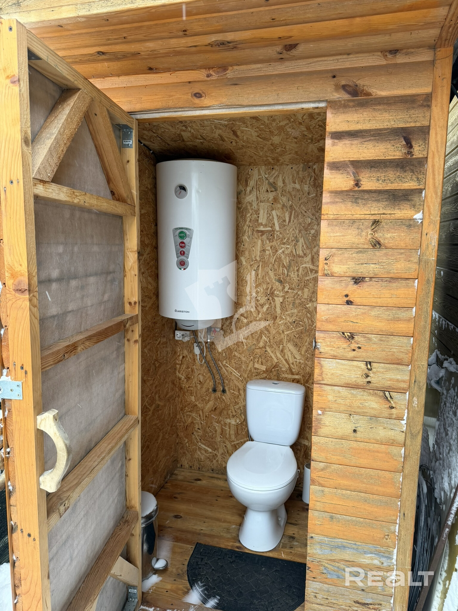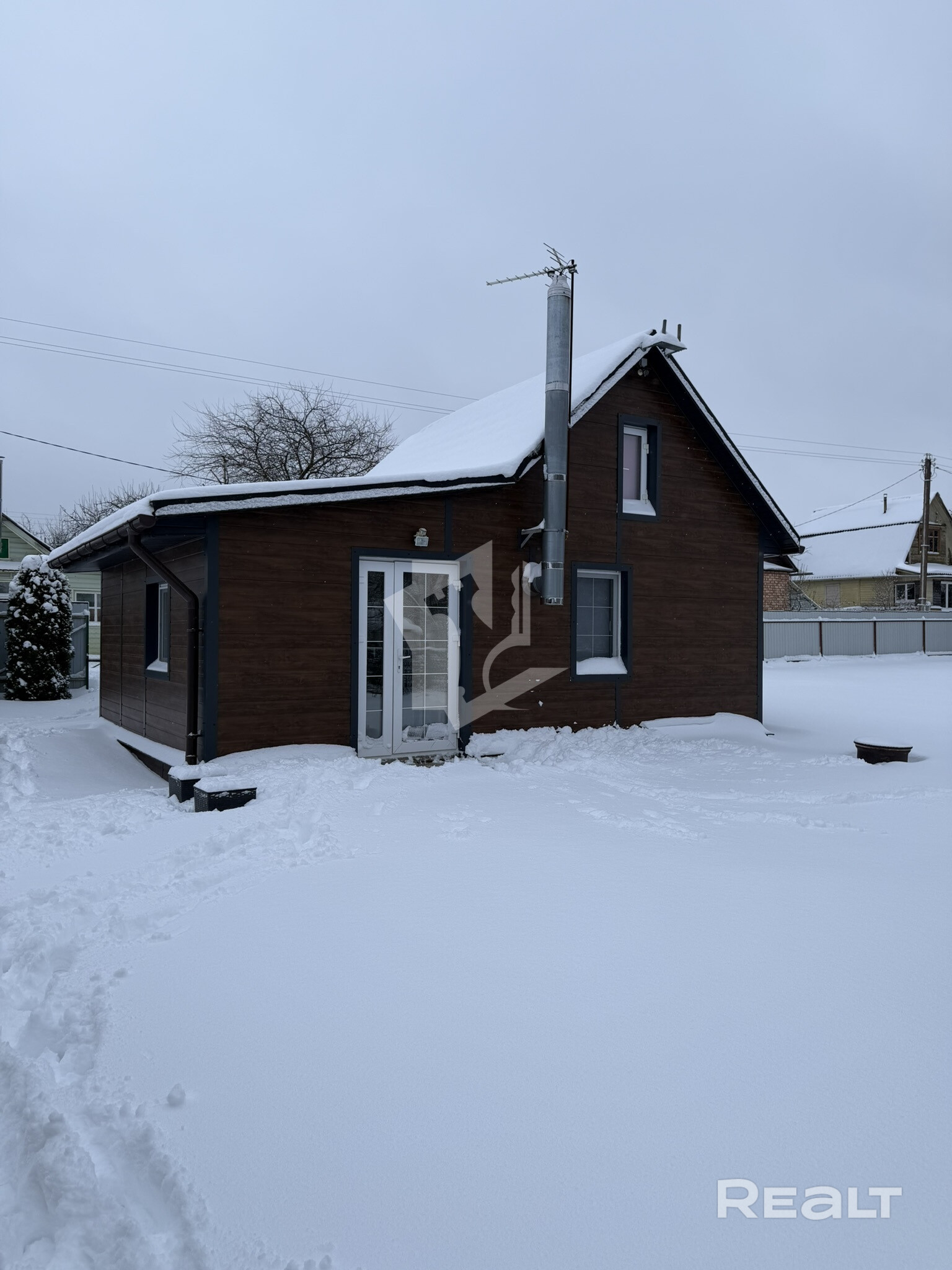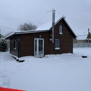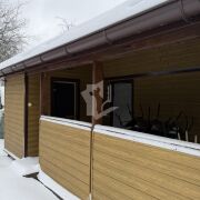 Двухэтажный дом из сруба, обшитый металлическими панелями с утеплением. По всему дому установлены двухкамерные стеклопакеты с антимоскитными сетками и установлена пластиковая двухкамерная входная дверь.