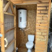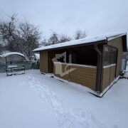 На участке располагается большая теплица из поликарбоната, беседка, большой бассейн, большой хоз.блок с просторной терассой, постирочной(стиральная машина имеется и подключена), Баня с печью HARVIA, летняя кухня с подведенной горячей и холодной водой.