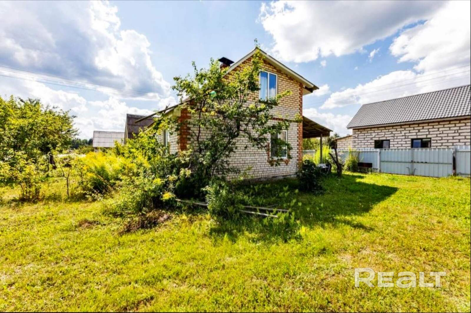 На участке проведена сезонная вода, есть плодовые деревья и кустарники.