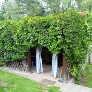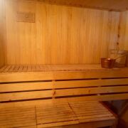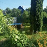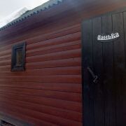 -Баня на дровах с комнатой отдыха, душ с бойлером и парилкой. Установлен стационарный бассейн.
