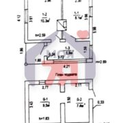 - Общая площадь дома составляет 59,8 м2. На первом этаже расположены две жилые комнаты 10,3 и 8,1 м2 и кухня, на мансардном этаже одна жилая комната 18,4 м2.