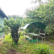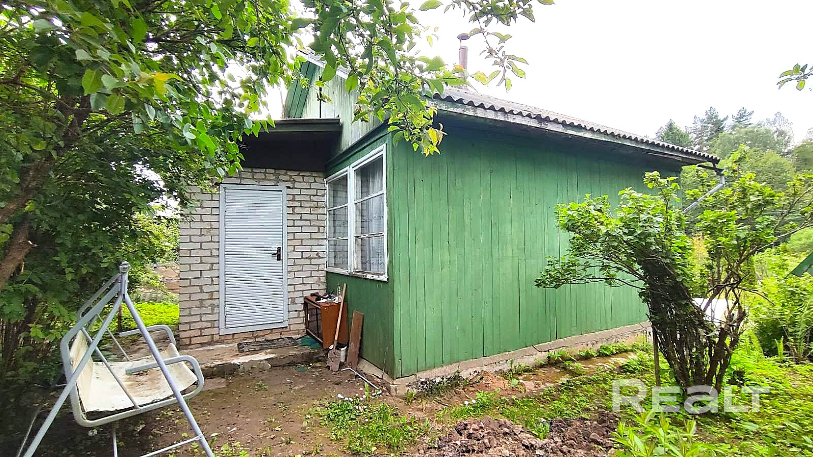 Для семейного отдыха установлена беседка и качели.