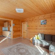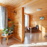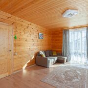Отделка стен и потолка вагонкой, в жилых комнатах пол ламинат, в коридоре кварцвинил, в с/узле плитка. Ретро электроразводка разведена по дому.
