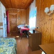-В доме две жилые комнаты, но в них есть всё, что нужно для комфортного отдыха. Натуральная деревянная отделка создаёт атмосферу уюта, а печь и камин наполняют пространство теплом. Вся мебель остаётся, так что можно заехать и отдыхать сразу.