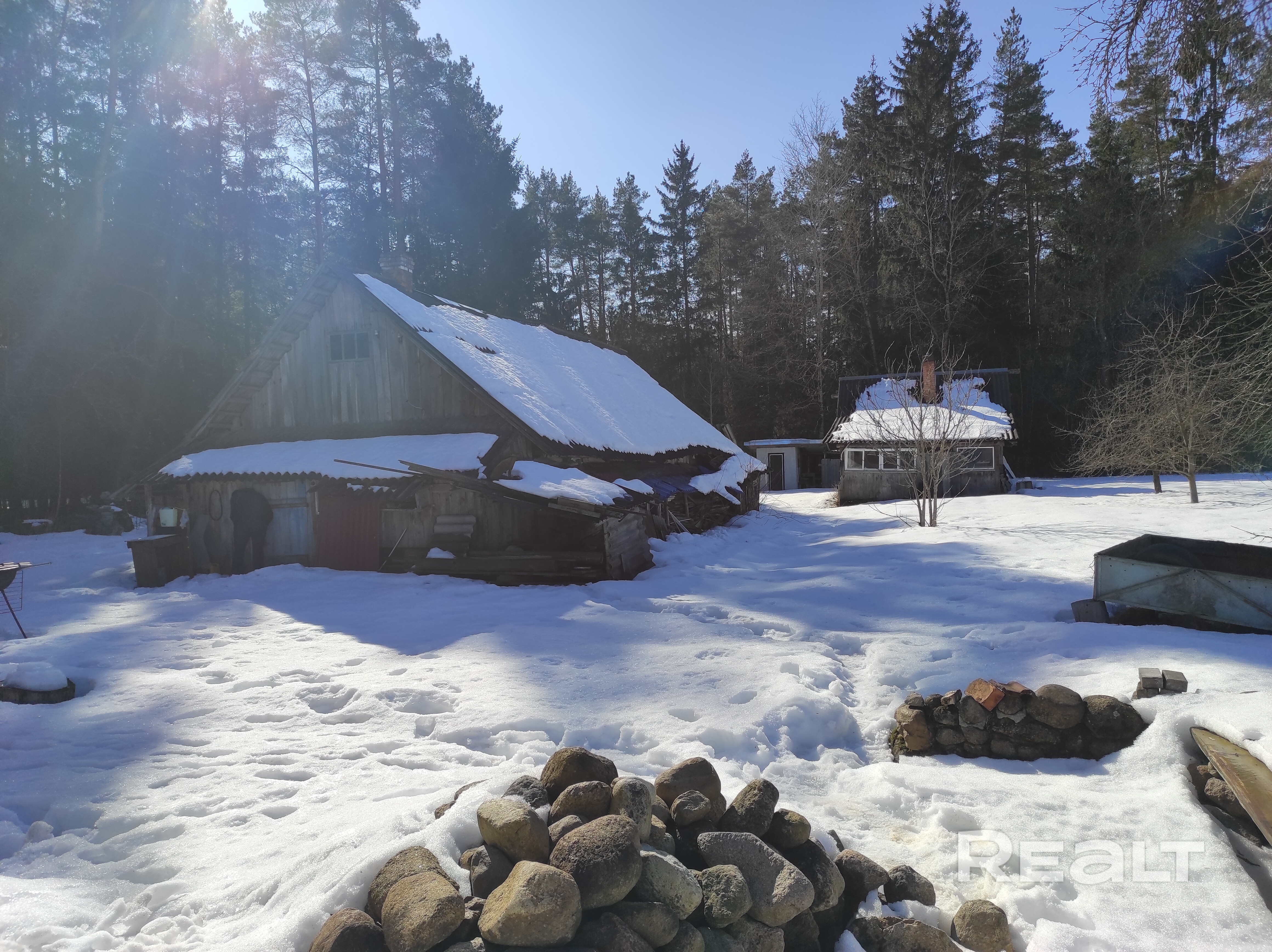 64 км от Минска и 10 километров от Вилейского водохранилища. Участок полностью в частной собственности, примыкает к лесному массиву. В доме была проблема с древесным грибком, которая уже решена. Грибок устранен, проведено антисептирование и нанесена антисептическая пропитка. Поэтому нужно приложить руку к установке нового пола и обшивке стен.