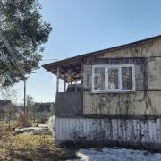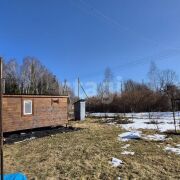 Просторный участок у леса (10,36 соток), на котором размещены: Деревянно-щитовой дом 5Х5 на сваях. Сваи высокие, есть цокольный этаж. В доме большая комната, кухня и прихожая-столовая. (проводка заменена, переклеены обои, положен линолеум, заменены все окна, установлены антимоскитные сетки, заменена входная дверь. Вода заведена в дом).