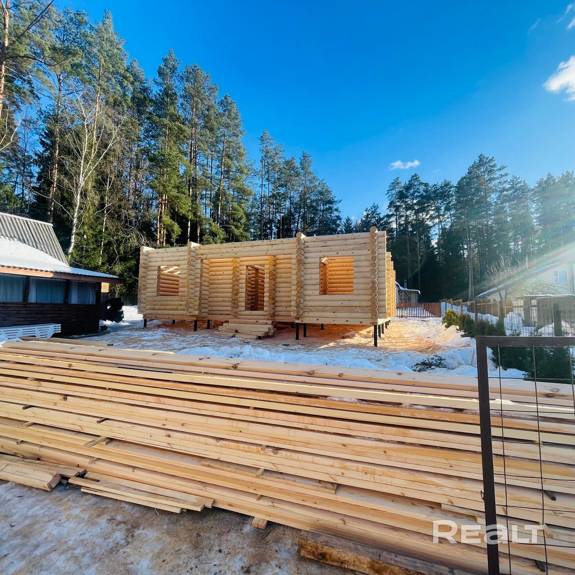 Продается участок с домом недалеко от Национального аэропорта Минск-2. На участке есть гостевой домик, который можно со временем обустроить в баню. Большая терраса. Сруб дома на 10*10 установлен в 2026 году. По периметру растут туи, многолетние кустарники. Собственный выход в лес. Хорошие подъездные пути. Приезжает автолавка 2-3 раза в неделю. Хорошие соседи.