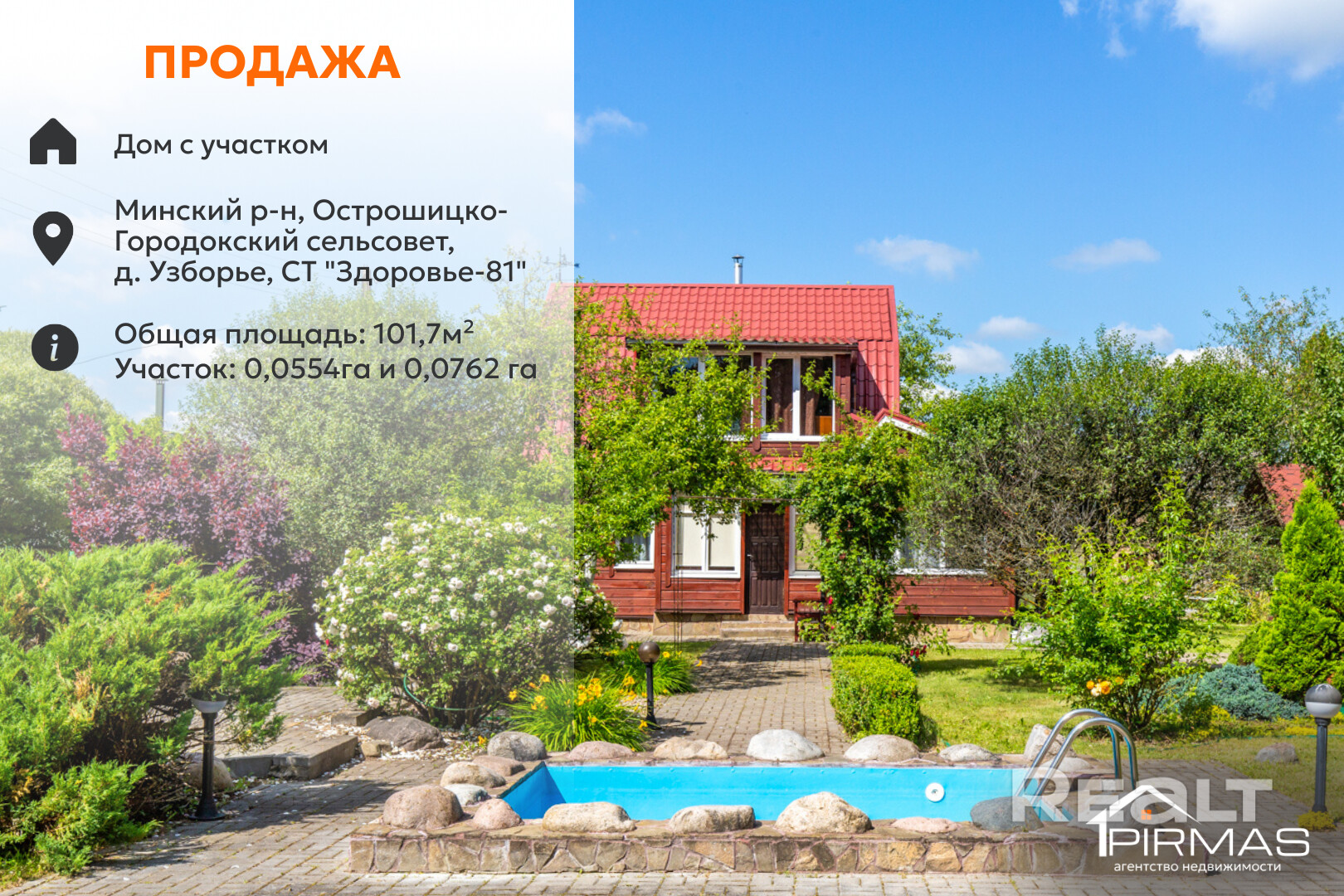 Продаётся дача в Минском районе, СТ «ЗДОРОВЬЕ-81», рядом с д. Раубичи. Около 14 км от МКАД. Крайний участок с выходом прямо к сосновому лесу.