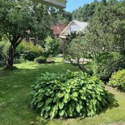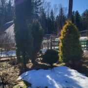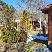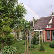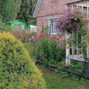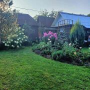 Огромное количество цветов и декоративных насаждений. Собственный прудик, со скамеечкой напротив, для отдыха от суеты. Прочные качели, баня, зона барбекю, места отдыха, все располагает к отличному времяпровождению. Для любителей выращивать свои овощи, есть два парника и немножко грядок.