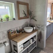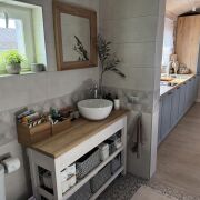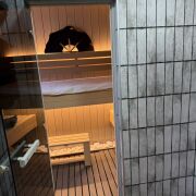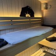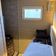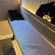 Баня: теплый пол, мебель массив.