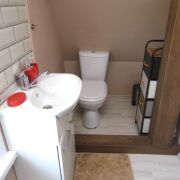 - туалет (канализация на три кольца), душевая кабина и бойлер на 120 литров, установлен стабилизатор напряжения.