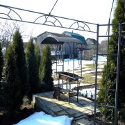 На участке высажены голландские туи и карликовые яблони, плодоносящий сад (яблоки, сливы,вишни).