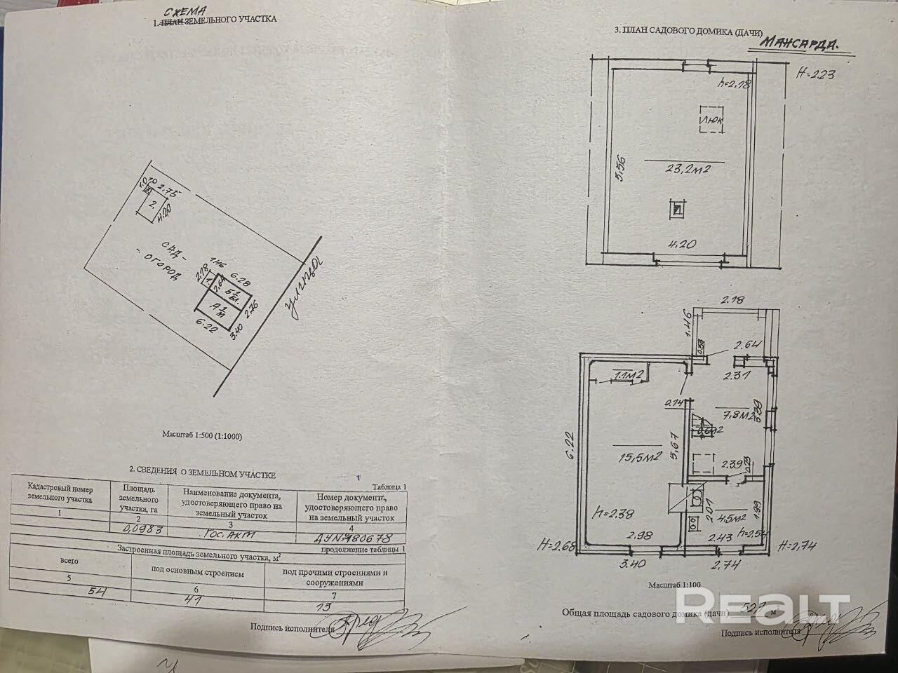 - Площадь участка