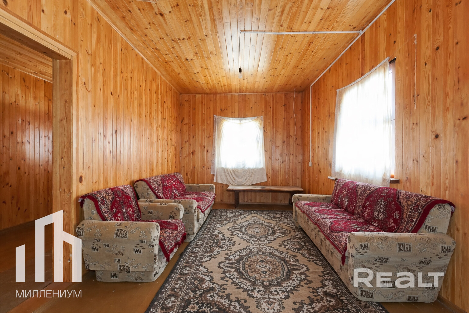Дом сложен из газосиликатных блоков,. Внутренняя отделка комнат выполнена вагонкой.