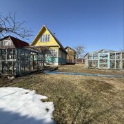 25 км от МКАД (Зеленый луг), комфортный бревенчатый дом, баня, гараж. Участок сухой, на возвышенности, полностью выровнен, с плодородной почвой, фруктовые деревья. Вода сезонная, разведена по всему участку. В доме печь с духовкой и сушилкой. Дом сухой, отделка качественной деревянной вагонкой. Две спальни, комната, кухня, обеденная веранда, комната на втором этаже. Есть сухой погреб для хранения. Две стеклянные теплицы. Дача полностью готова к жилью и приятному отдыху.