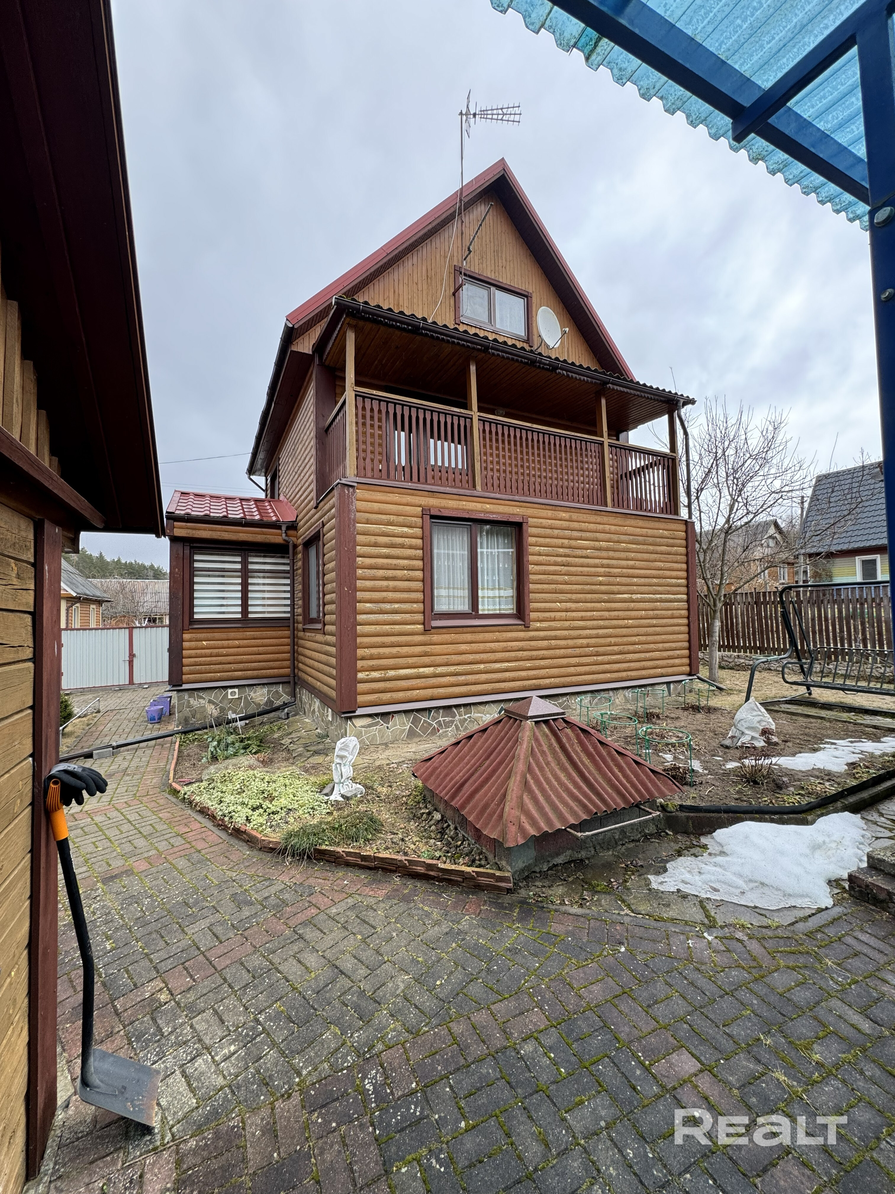 Дача, 100% готова к сезону, идеальный вариант без хлопот. Бревенчатый дом, отделан деревом. 3 уровня. Печь, 2 камина, балкон, электрические батареи. Бойлер 100 л, насосная станция, резерв 200 л, септик. Отдельная баня на дровах с душевой и комнатой отдыха. Просторная беседка с печью-барбекю, капитальный небольшой бассейн, просторная кладовая-сарай и навес для авто. Дружелюбные соседи, вокруг сосновый бор, рядом красивое озеро для купания и рыбалки. Газон и плодовые деревья.