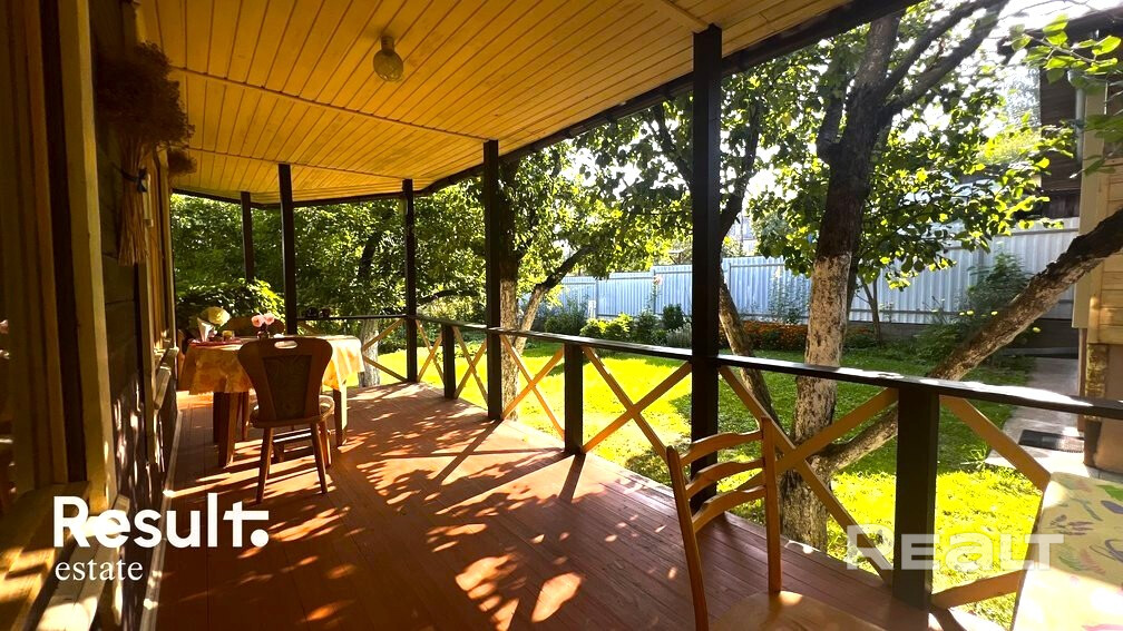 Уютная терраса служит универсальным местом для комфортного отдыха на свежем воздухе, объединяет уют дома с красотой приусадебного участка.