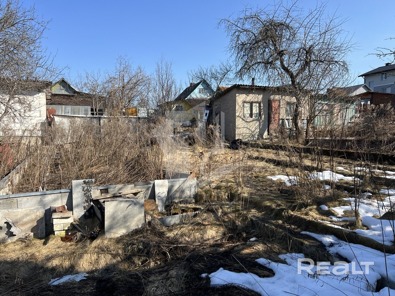 На участке расположен бетонный хозблок включающий в себя с/у и помещение для хранения инвентаря.
