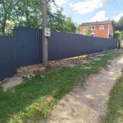- Ограждение: Участок надежно огорожен по всему периметру. Со стороны дороги установлен забор с металл профиля высотой 1.7 метра с удобными калиткой и воротами.