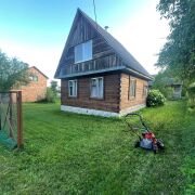Продается уютная дача Белорусского писателя Алеся Бачило. Садовое товарищество Союза Писателей окружено лесом, находится на взгорье, все деревья уже выросли и создают неповторимый уют, которого хочется после каменных джунглей. В доме можно жить все лето и ездить на работу в Минск. Дом сруб. Дом двухуровневый. На первом этаже 2 комнаты и кухня. Второй этаж – мансарда, требует ремонта. Участок 4.28 сотки, расположенный всего в 17 км от МКАД в Молодечненском направлении.