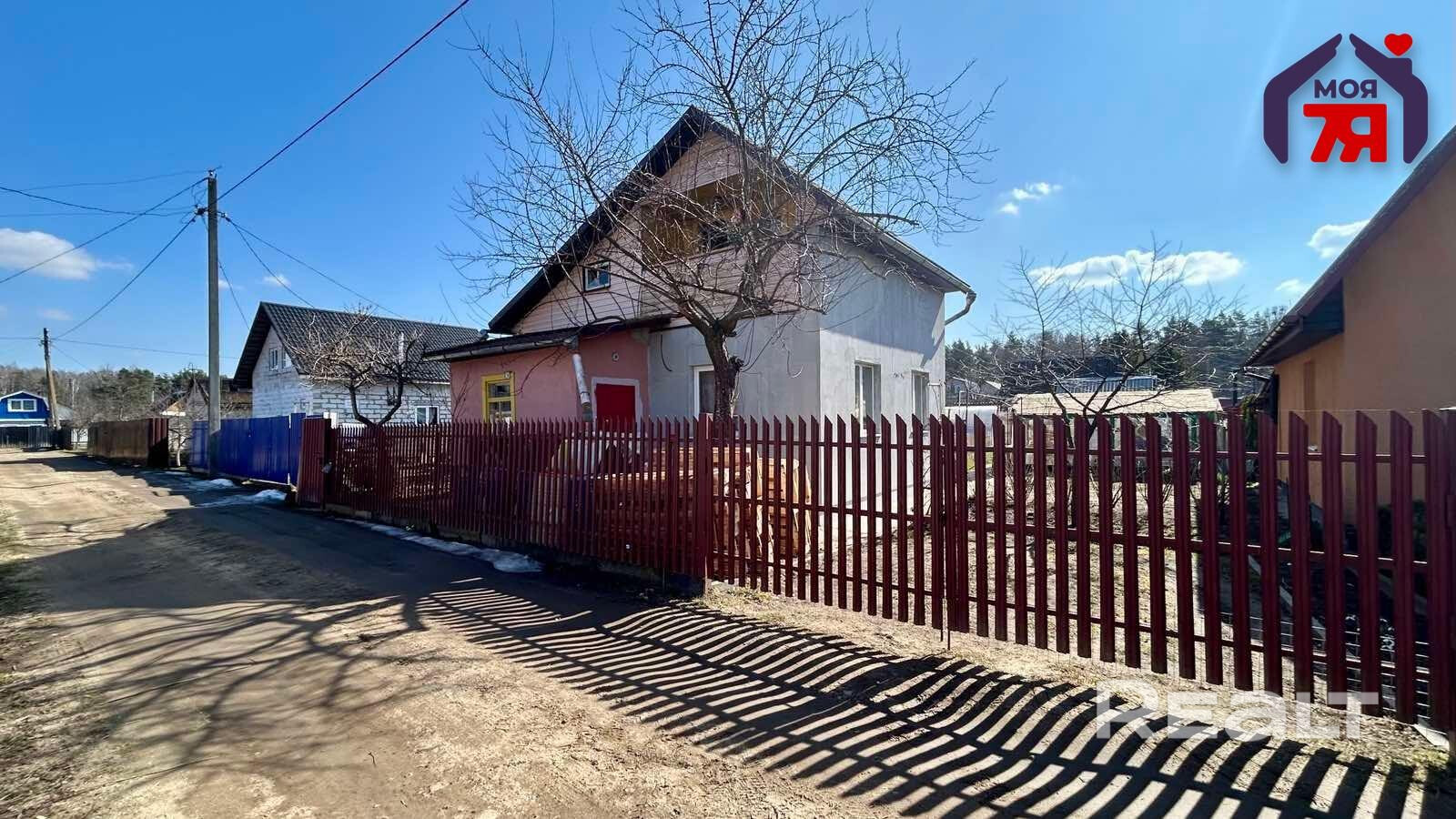 - Кирпичный дом 1988 года постройки, утеплён и оштукатурен. Общая площадь 53,6 м2, жилая — 28,6 м2. Одноэтажный дом включает 3 комнаты и кухню. Дом с заменённой проводкой, окнами ПВХ (двухкамерные), деревянными перекрытиями и дощатым полом. Крыша — шифер. Погреб расположен в доме. Печное отопление, газ на баллонах, скважина для водоснабжения. Канализация с биологической очисткой (бактерии). Летний душ с возможностью подключения бойлера. Частично остаётся мебель.