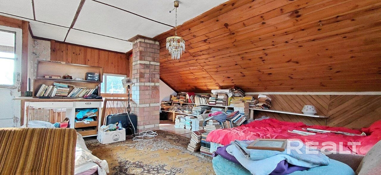 Предлагаю к просмотру двухэтажный дом, идеально подходящий для сезонного отдыха. 1. Тупик. Ваш участок — последний. Никто не ездит мимо ваших окон. Парковка — не проблема. 2. Два в одном. Два объединенных участка в одних руках. Соседи только с одной стороны. Это редкость для этой локации. 3. Архитектура света. Дом с окнами в пол на мансарде и большими окнами на 1 этаже. Светлый балкон — готовое место для завтраков. 4. Природа в подарок. В конце участка — ручей и лес. 5. Город рядом- Заславль.