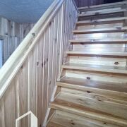 Стены бревенчатые, доска, окна ПВХ, полы доска, ламинат; двери деревянные. Высота потолка 2.46 м.