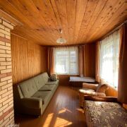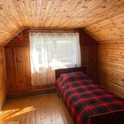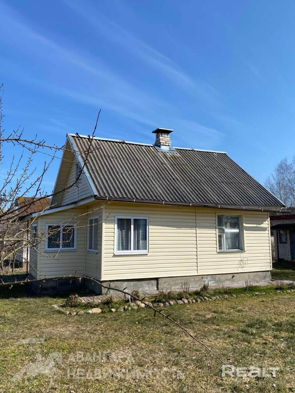 Продается уютная двухэтажная дача в 40 км от Минска в садовом товариществе «Сябры-83», Молодечненский район. На участке находится двухэтажный дом, теплица, сарай, сад с плодово-ягодными насаждениями, цветник. Площадь участка 7 соток и есть дополнительные 5,5 соток для посадки. Аккуратный двухуровневый дом, 1986 года постройки. Общая площадь дома составляет 58 кв. метра. Дом бревно, вагонка, отделка наружных стен – сайдинг. Кровля – шифер. Вода сезонная, отопление печное, сан. узел на улице. Сарай с летней кухней кирпичный, подведена вода и установлен умывальник, бойлер. Есть баня, душевая, сарай. Живописное место: товарищество со всех сторон окружено лесом. Вокруг грибные и ягодные места. В 3 км от дачи в д. Володьки, есть озеро. Два раза в неделю приезжает автолавка. В 1 км от дачи расположен аг. Олехновичи с развитой инфраструктурой. Отличное транспортное сообщение: до ж/д станции Романы 25 минут пешком.