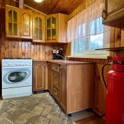 -Внутри установлены ПВХ-окна, есть стиральная машина, кухня - рабочая и продуманная: плита, газовый баллон, мойка, навесные шкафы. Это важный момент, потому что на многих дачах кухня формальная - здесь она реально удобная.