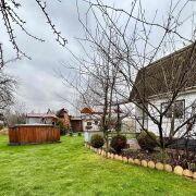 -Участок 5 соток, ровный и ухоженный. Пространство зонировано грамотно: дорожки из плитки соединяют дом, зону отдыха, хозяйственные постройки и грядки - по участку удобно ходить в любую погоду. Есть разработанные гряды, теплица, зелёный газон, аккуратные бордюры. Участок не перегружен, но при этом максимально функционален.