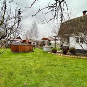 -Дополнительно на участке установлен бассейн - редкий бонус для дачи такого формата, особенно если рассматривать её как место для летнего проживания с детьми.