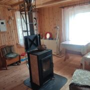 Дом построен в 2005 году и расположен на возвышенной части, на территории растут красивые березы, ягодные кусты, плодовые деревья. Стены –деревянный брус, обшит вагонкой. Окна – стеклопакеты. Полы дощатые, кровля-шифер. На первом этаже расположена небольшая кухня и просторная гостиная. На втором просторная спальня. Рядом построен уютный туалет с душевой кабиной. Вода-скважина, введена в дом. Отопление печное (современная печь на дровах).