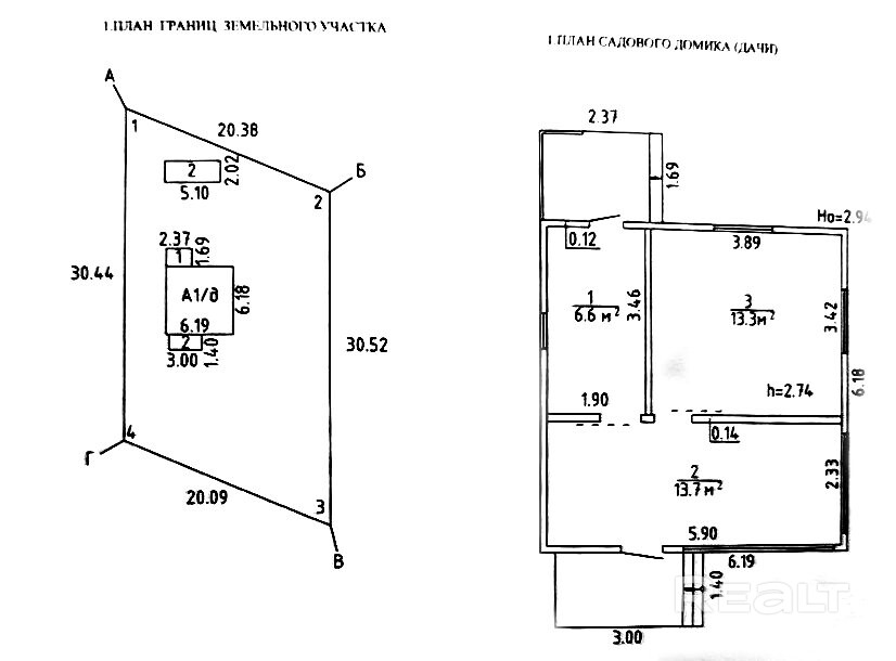 - Площадь участка
