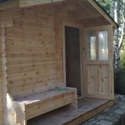 Продается зеленый участок с огородом, соснами, березами и голубикой для отдыха (2 расположенных один за другим участка) общей площадью 14.8 соток в с/т с развитой инфраструктурой, есть продуктовый и строительный магазины. 36 км от МКАД. Расположены в тупиковой улице, соседи с одной стороны, их дом вдалеке. На каждом из участков 2 щитовых однокомнатных домика 3×4 (12 м2), крыша - ондулин. Недалеко от Дудуток и Руденска. Регулярное сообщение - электричка (Штадлер), расстояние от остановки 15 мин.