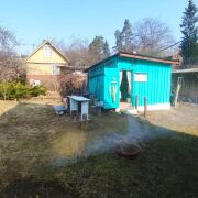 Участок 5 соток, правильной формы с небольшим уклоном к дороге. По периметру посажены кусты черной и красной смородины, крыжовник, три молодые плодоносящие яблони, виноград.