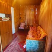 Дом щитовой, обложен кирпичом, построен на высоком фундаменте, вмещающем большой сухой погреб и подполье, крыша из шифера. Жилая площадь 30м2, площадь отдельной кухни 6,5м2. Внутри дома 2 спальни по 9м2 и просторная светлая веранда 12м2, обшиты вагонкой. Отопление печное (печь действующая), вода сезонная.